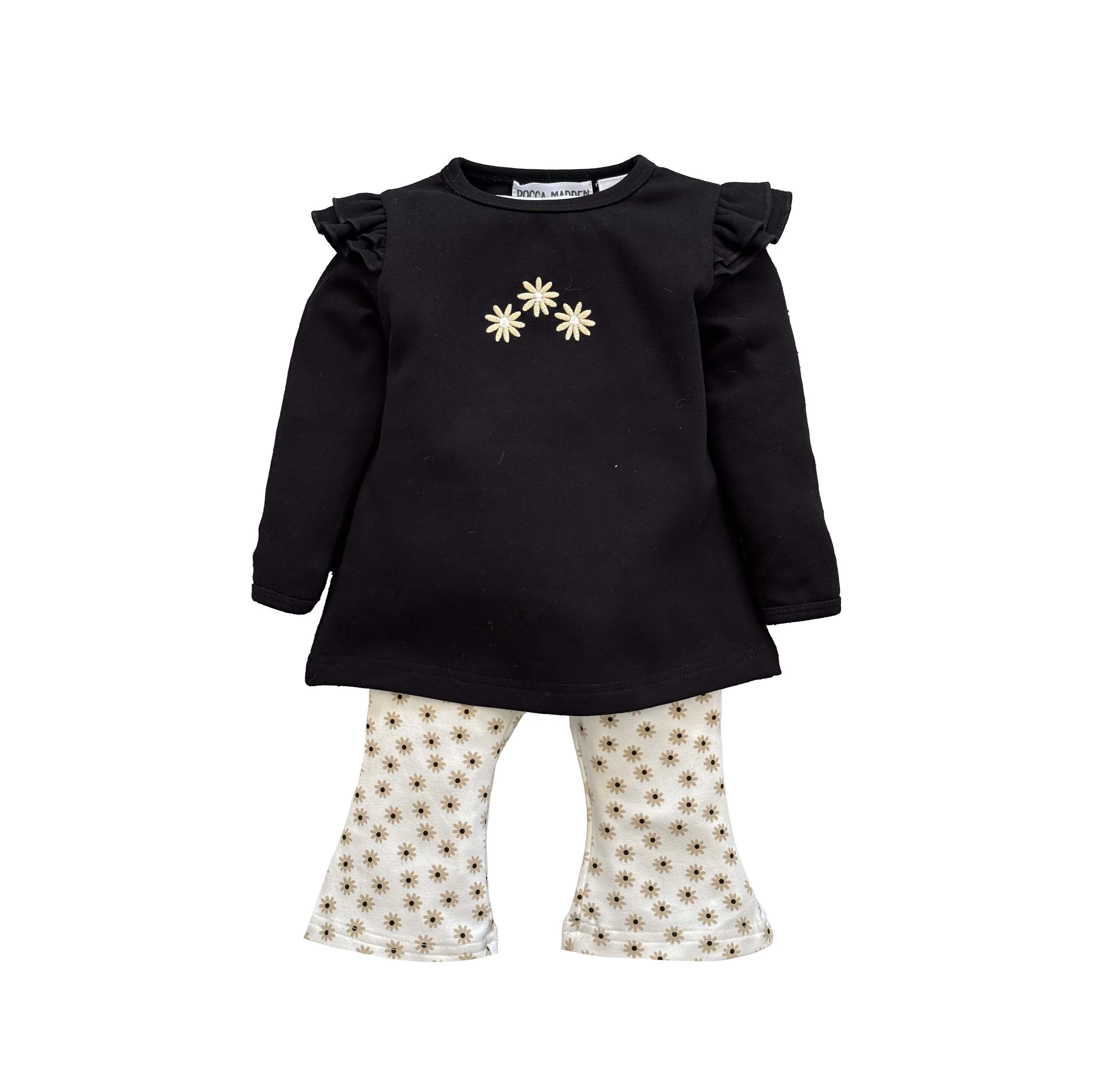 Shop › Hadley Flare Set Print Image 1 of 1 Hadley Flare Set Print $44.95 Thick and buttery soft cotton frill top with printed flare pants Size: 00 0 1 2 3 4 5 Add To Cart Added! Thick and buttery soft cotton frill top with printed flare pants